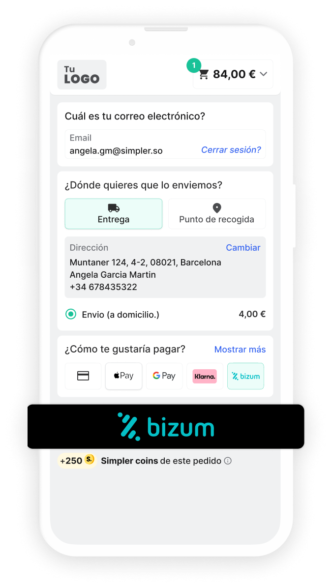 Simpler comes with Bizum pre-configured. No integration work, no setup delays — live in 24 hours. Spain's most-used mobile payment method, ready from day one.